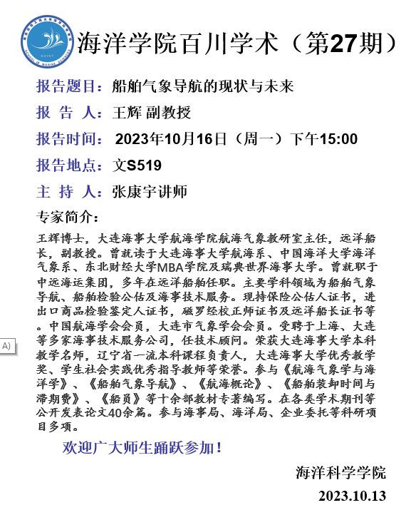 上一条:海洋学院百川学术(第31期):特邀俄罗斯科学院Titchenko Iurii研究员作学术报告