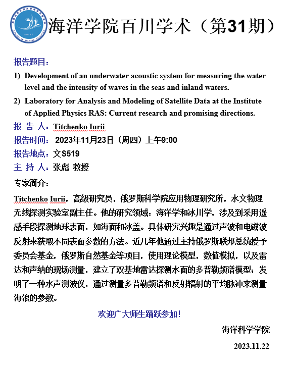 上一条:海洋学院百川学术(第34期):特邀中国科学院海洋研究所侯一筠研究员作学术报告