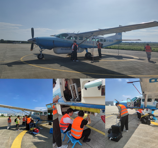 在飞机平台改装与试验准备阶段,项目团队依据仪器尺寸与重量定制了专用的挂载装置,并开展了一系列准备工作,包括安装方案论证、飞行区域调研与试飞测试,保障了后续外场飞行的安全实施与整体校飞任务的顺利推进。